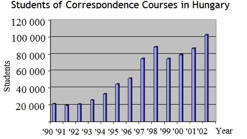 CORRESPONDENCE COURSE is the first model applied in distance education. The original correspondence courses were carried out through the postal service. Professors would mail assignments and lecture notes to students, who would return essays and projects for grading. Most colleges and universities offer correspondence courses and recently they take place over the Internet. Although the concept is the same: students anywhere can take classes without having to physically be present at the school. Students enrolled in university distance learning programs receive their teaching material and schoolwork by (e)mail and much the same way they mail back their work to the professors. The instructor would grade the material, then send on the next assignment. The popularity of correspondence courses are not decreasing. For example in Hungary the interest is increased more than 400(!)% between 1990-2002.