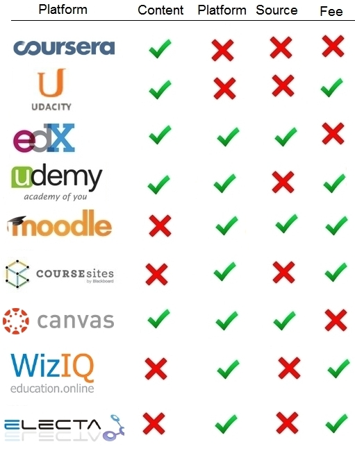 edX ( www.edx.org ) is a content and platform provider used by that universities such as Harvard and MIT and offers free courses more than 100,000 students. The platform is open source, however, investment is necessary in installation as well as in maintenance. edX is suitable for organizations that want a modern, flexible, robust course-management platform with the ability to accommodate large enrollments. Benefits are the free 'honor system' certificates, the fee-based verified certificates and the advanced certificates for specialized work. It has a big catalog from interesting and prestigious university partners. It is great for the sciences and medicine and has foreign language classes. Disadvantages are the frustrating discussion forums. The quality of courses is varying. There are no apps.